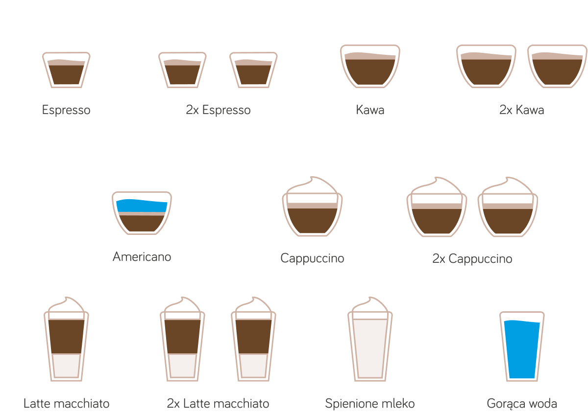 Американо, капучіно, еспресо, гаряча вода, кава з молоком, латте макіато, спінене молоко