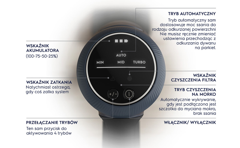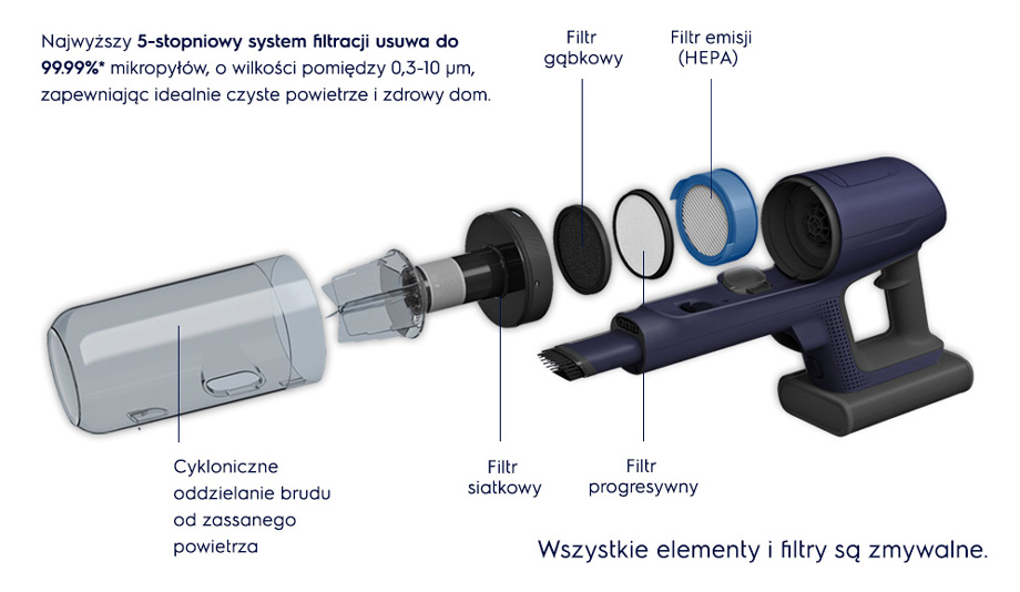 *На основі внутрішніх досліджень потужності всмоктування, проведених у 2021 році на ручному пилососі відповідно до стандарту IEC 62885-2, порівняно з моделлю WQ61-40OG **інноваційна конструкція в поєднанні з потужністю всмоктування, що генерується циклонним двигуном. Вимірювання відповідно до IEC 62885-2. Дослідження внутрішньої потужності всмоктування для ручного пилососа.