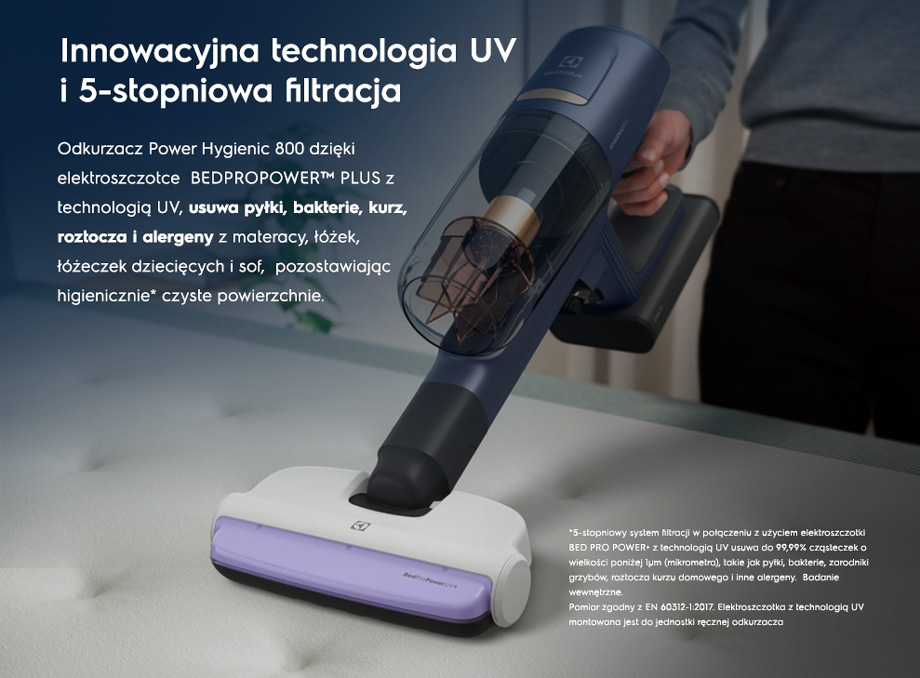 Індукційний двигун з в 5 разів* більшою потужністю всмоктування робить ретельний догляд за твердими підлогами та килимами набагато простішим. Крім того, пилосос вловлює до 99%** пилу з очищуваної поверхні.