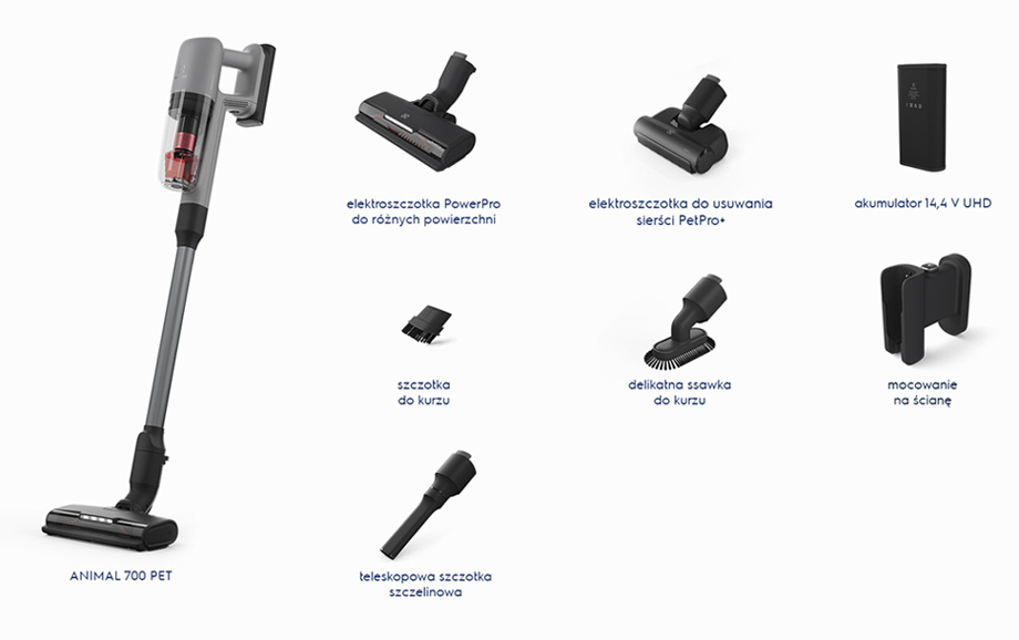 ANIMAL 700 PET ефективно видаляє шерсть тварин, пісок і більшість забруднень з твердих підлог і килимів. .
