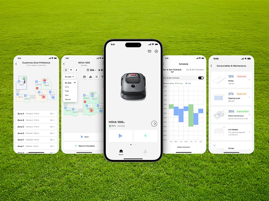 Встановіть унікальні візерунки косіння, такі як серця або букви, і пристосуйте графіки до сезонних потреб газону. MOVA 1000 забезпечує повний контроль над доглядом за садом, адаптуючись до ваших уподобань.