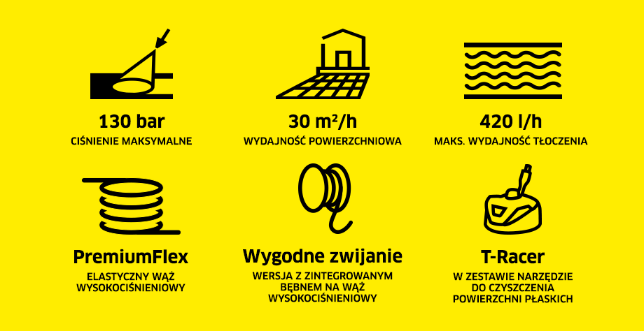 Пристрій зі шлангом PremiumFlex і пістолетом G 160 Q Power Control ефективно очищає помірні забруднення. Система Plug 'n' Clean полегшує кріплення пляшок з миючим засобом Kärcher. Набір містить насувку для чищення плоских поверхонь T5 і засіб для чищення каменю і фасаду.