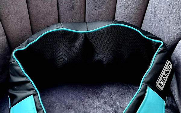 Пристрій покритий еко-шкірою, яка надзвичайно м'яка і приємна на дотик. Сторона, яка прилягає до тіла під час масажу, оброблена дихаючою сітчастою тканиною, що забезпечує належну циркуляцію повітря. Масажер забезпечує високий комфорт використання. Використовувані матеріали дозволяють легко підтримувати його в чистоті.
