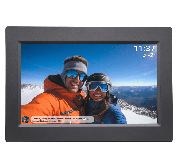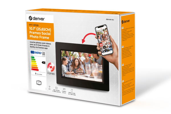 Підключайтеся до світу та діліться спогадами за допомогою вбудованої функції Wi-Fi (2,4 ГГц). Denver Frameo PFF-1015B дозволяє легко завантажувати фотографії з будь-якої точки світу безпосередньо в рамку – все, що вам потрібно, це доступ до Інтернету. Ви можете миттєво поділитися останніми моментами з родиною та друзями, незалежно від відстані.