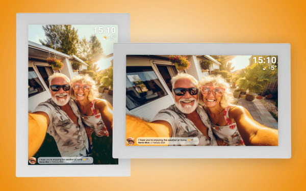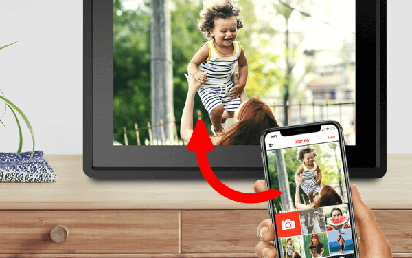 Рамка працює з додатком Frameo, доступним для смартфонів і планшетів з системою Android і iOS. Вона дозволяє бездротове завантаження фотографій та відео безпосередньо в рамку з будь-якої точки світу. Завдяки цьому ви можете ділитися своїми спогадами з родиною та друзями в режимі реального часу, а також додавати описи до фотографій.