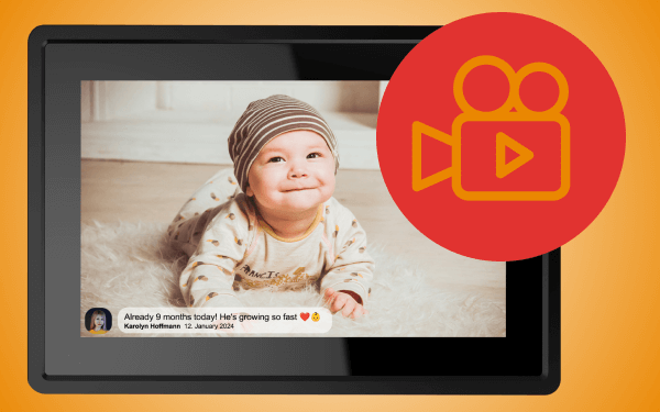 Пристрій підтримує відтворення коротких відео тривалістю до 15 секунд. З його допомогою ви відобразите як статичні фотографії, так і спогади у вигляді відео. Продемонструйте важливі моменти за допомогою Denver Frameo PFF-1015B у більш динамічний, емоційний спосіб.