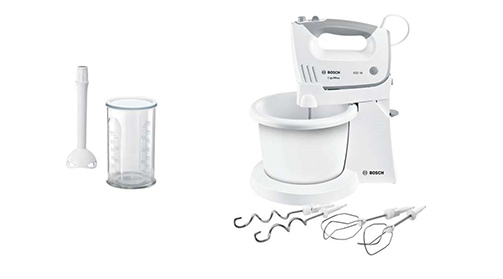 Модель Bosch MFQ36445 також замінює блендер. У набір входить спеціальна насадка для приготування коктейлів, смузі, крем-супів, спредів і соусів. Нога змішування подрібнює сирі та варені овочі та фрукти. Він стійкий до низьких і високих температур.